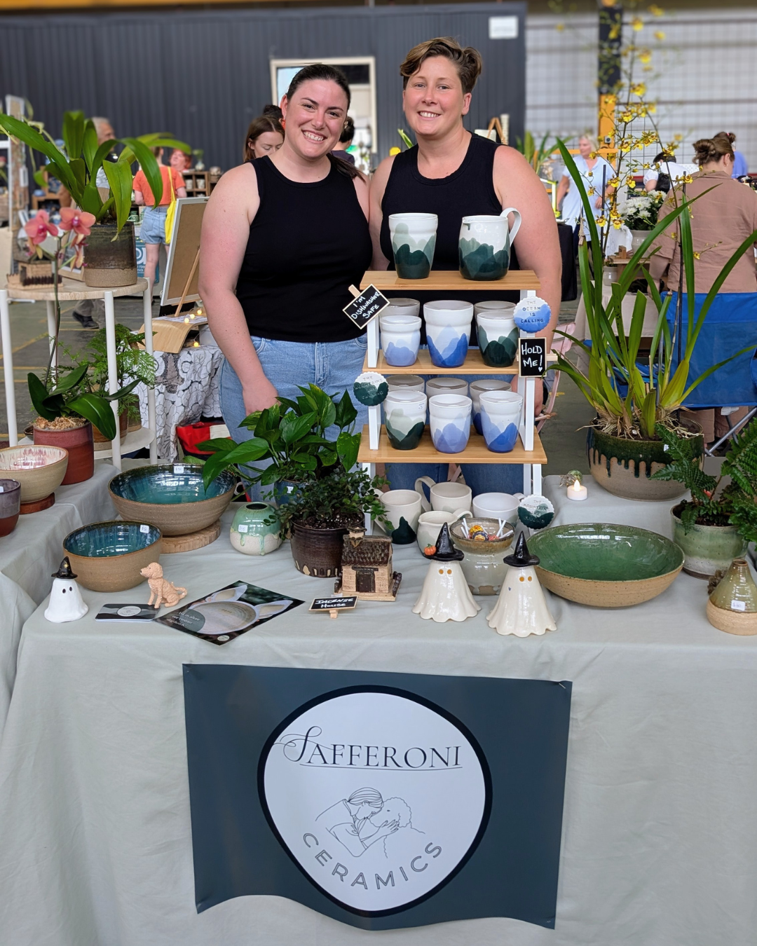 We are Court & Jayde, owners and creators of Safferoni Ceramics - and this gal <------ is Saffron. Our fur-darling and business namesake. Want to know more? Follow the link below.